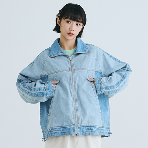 熱賣中🔥 即將售完【E JEANS】深淺雙色拼接造型雙向拉鍊純棉牛仔外套 - 兩色