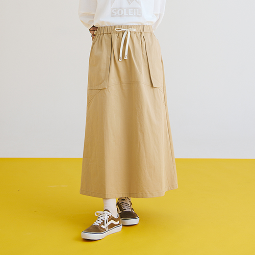 熱賣中🔥 即將售完【e-collection】拼貼方塊口袋造型腰綁帶純棉長裙 - 兩色