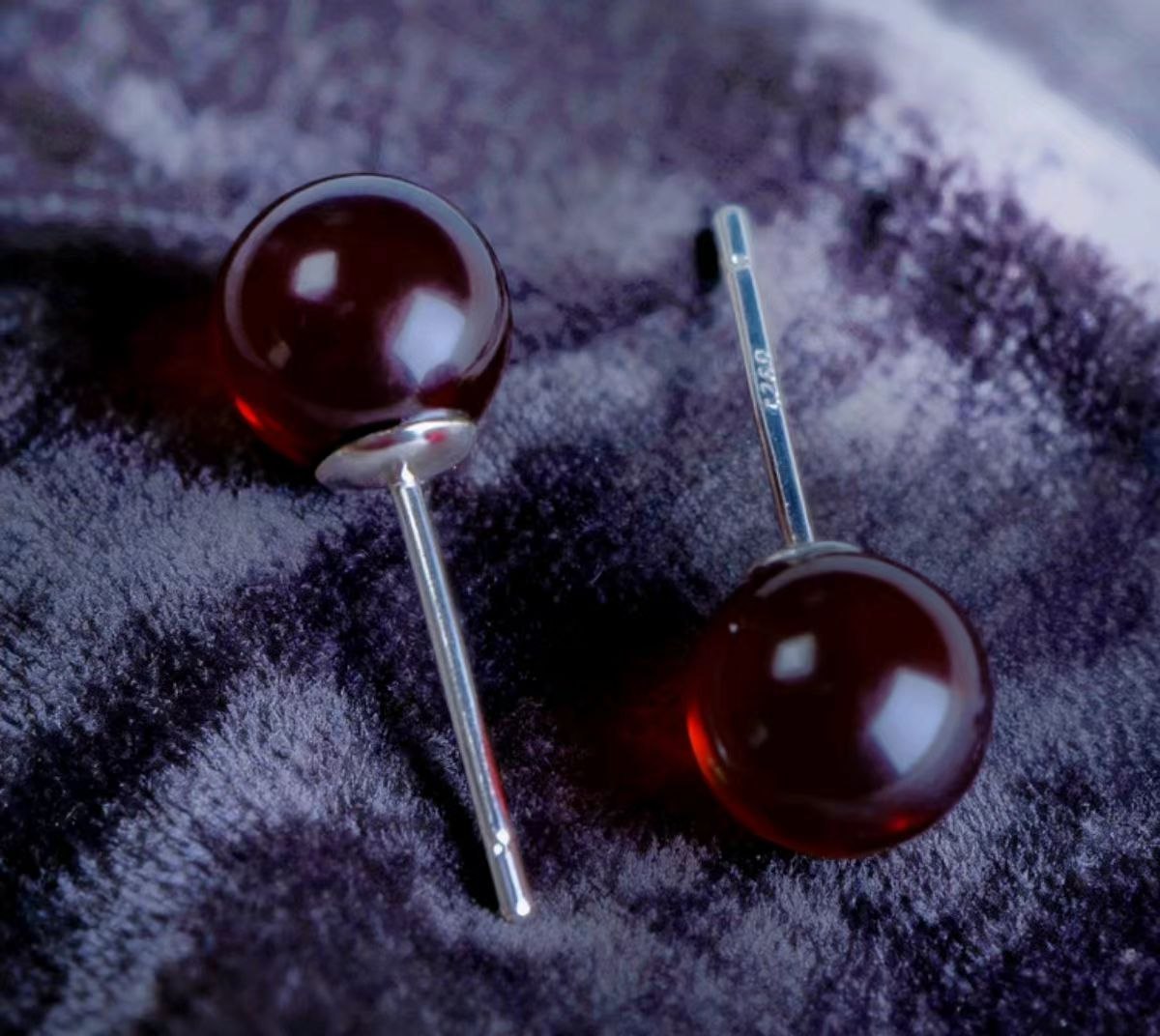 Hot Selling🔥 Almost Sold OutBB160-血珀素耳钉5mm银 XP