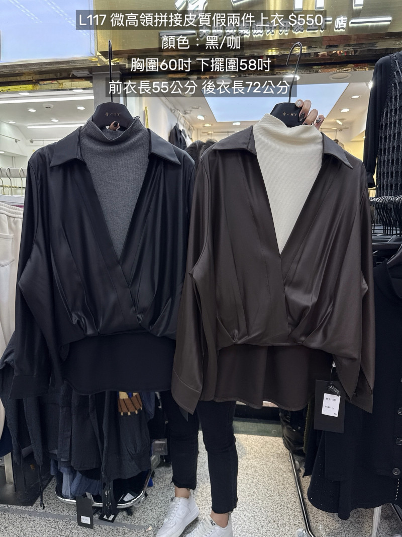 熱賣中🔥 即將售完L117微高領拼接皮質假兩件上衣