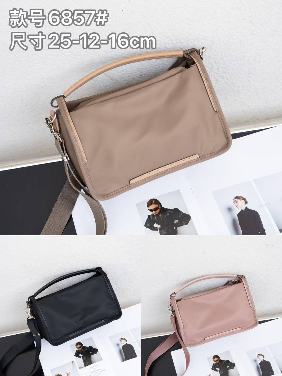 Hot Selling🔥 Almost Sold OutQ59-防水洗水尼龙配头层牛皮包包6907