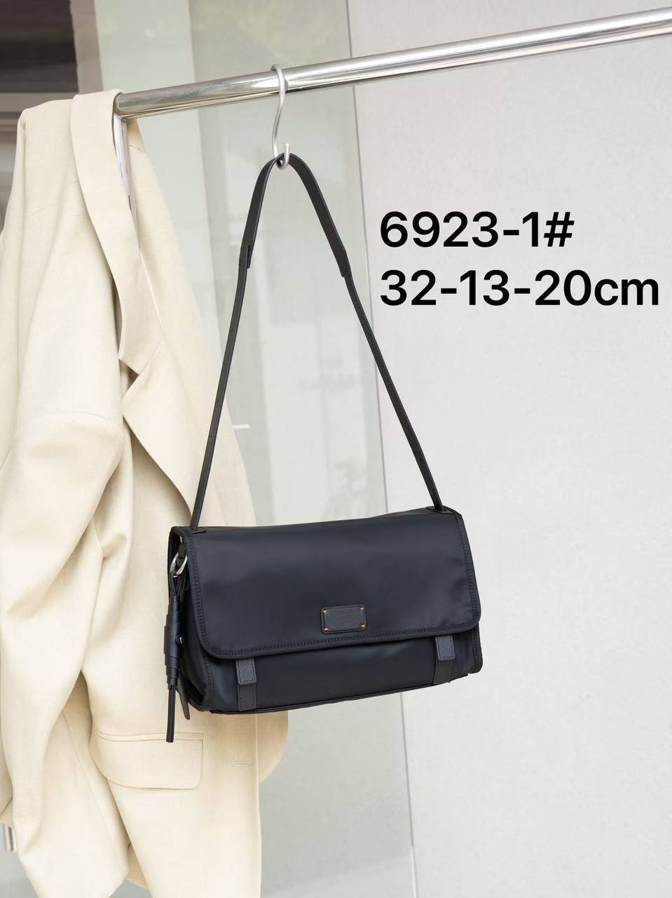 Hot Selling🔥 Almost Sold OutQ76-高密度防水尼龙配头层牛皮包包6923-1 黑