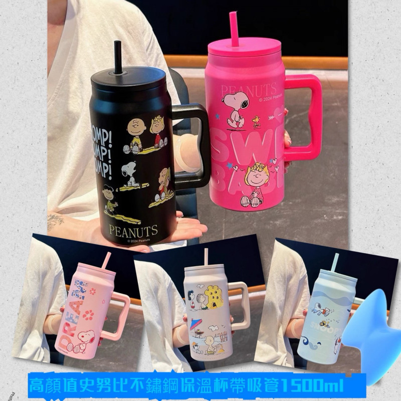 熱賣中🔥 即將售完預購-高顏值史努比不鏽鋼保溫杯帶吸管1500ml/罐
