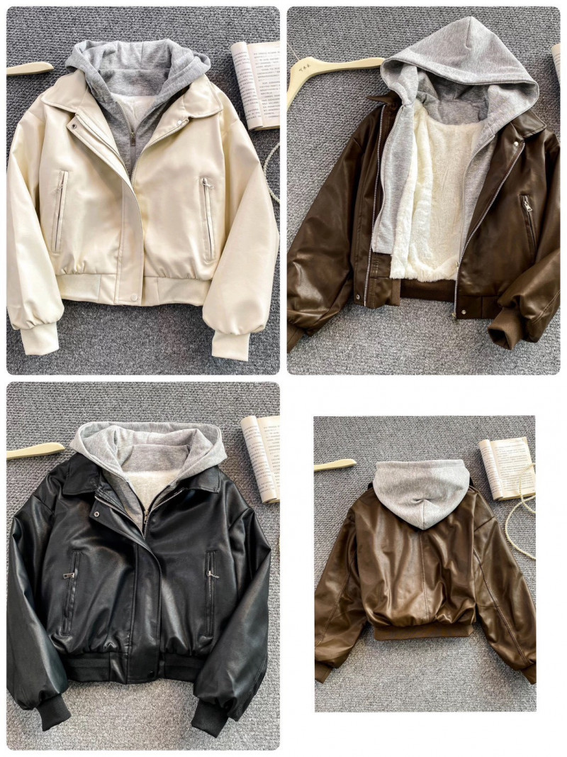 熱賣中🔥 即將售完A430拼接連帽內刷毛皮革外套