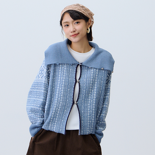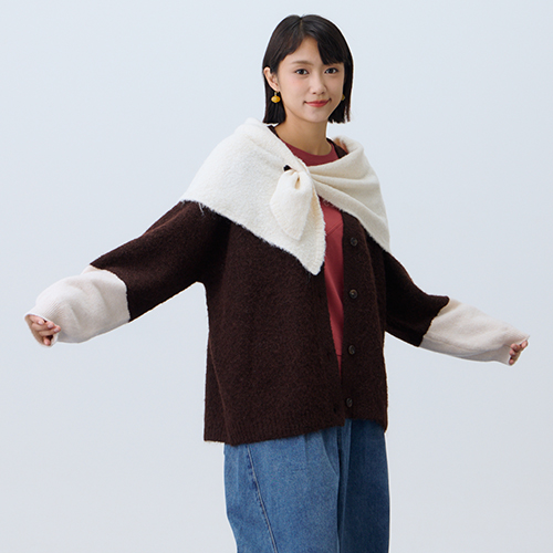 熱賣中🔥 即將售完【E-WEAR】配色三角大圍巾造型針織外套 - 兩色