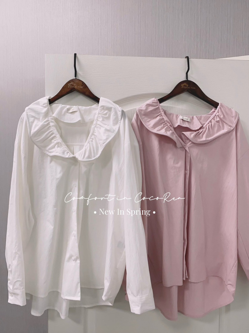 熱賣中🔥 即將售完A63標 預購 荷葉領(有鋼絲可朔型)襯衫 粉/白 胸130 長70-78 連線價1680喜歡+1帶哪裡取(A嘉義取B台中取C郵寄)