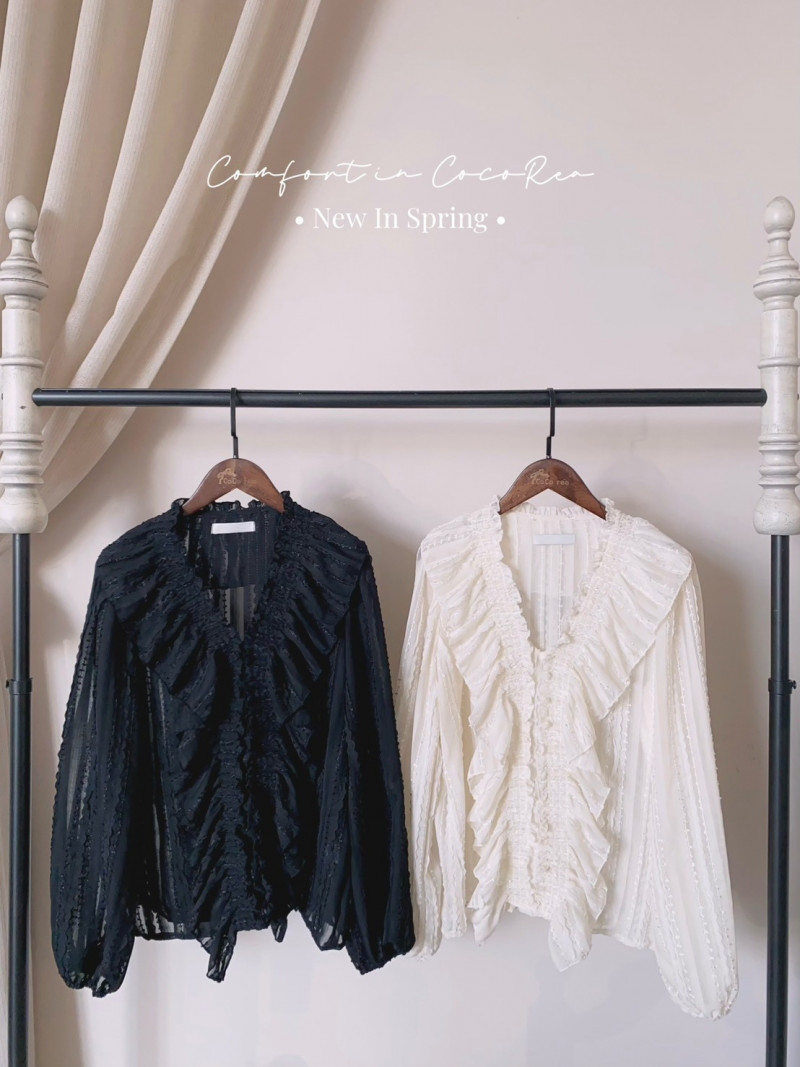 熱賣中🔥 即將售完A64標 預購 V領荷葉立體點點滾邊雪紡上衣 黑/米 胸108 長61 連線價1780喜歡+1帶哪裡取(A嘉義取B台中取C郵寄)