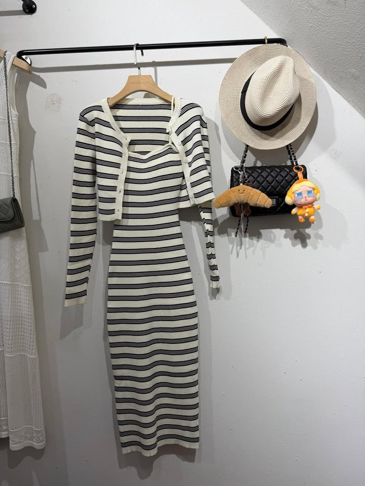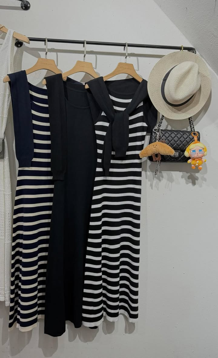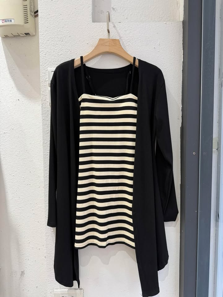熱賣中🔥 即將售完C19削肩針織橫條背心長洋+披肩SET