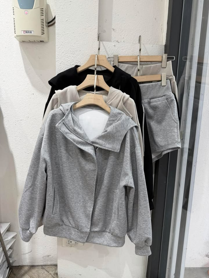 熱賣中🔥 即將售完C57高磅翻領太空棉連帽短褲SET