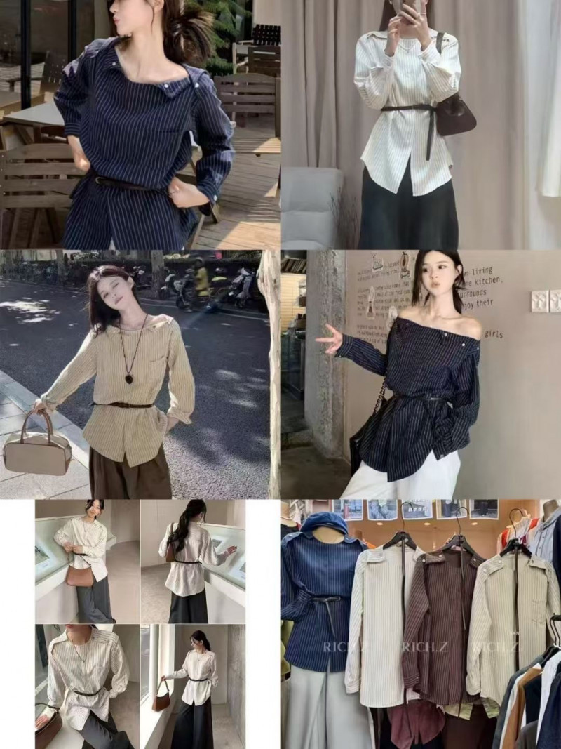 熱賣中🔥 即將售完A601肩釦直條紋上衣(附皮帶)