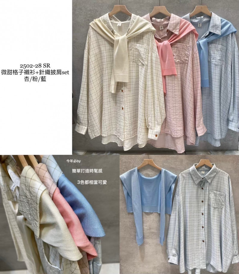 熱賣中🔥 即將售完A611格紋襯衫+披肩兩件式(不挑色)