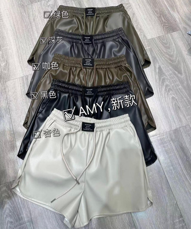 熱賣中🔥 即將售完A615標籤鬆緊抽繩皮短褲(不挑色)