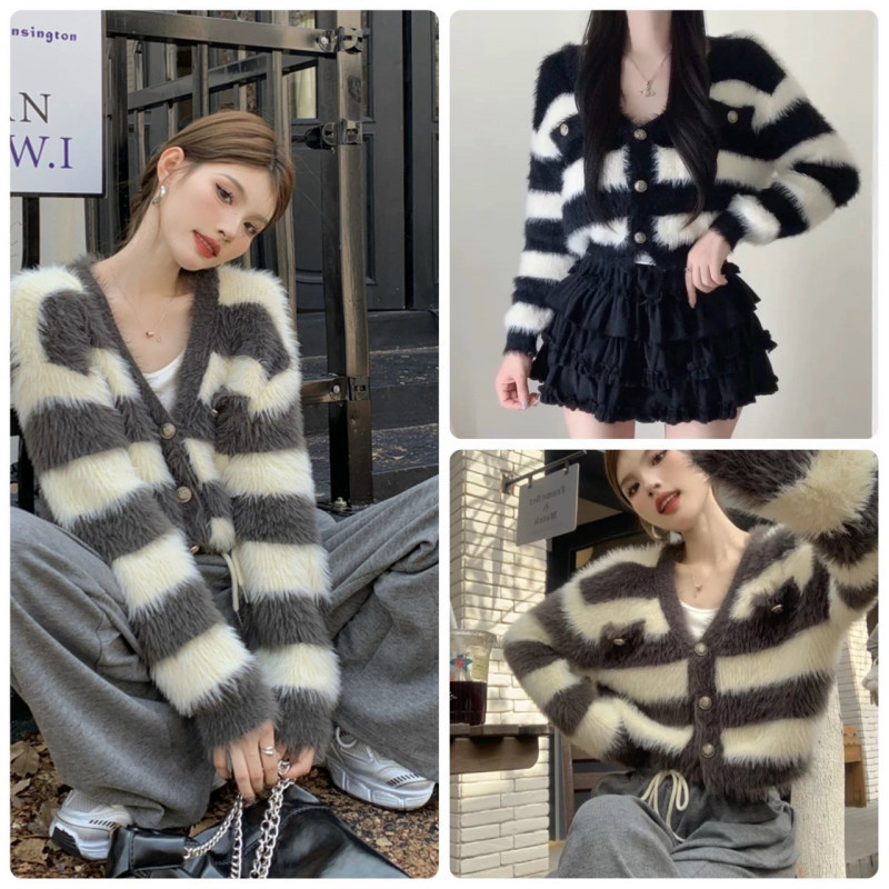 熱賣中🔥 即將售完A655甜美款拼接緹花條紋水貂外套(不挑色)