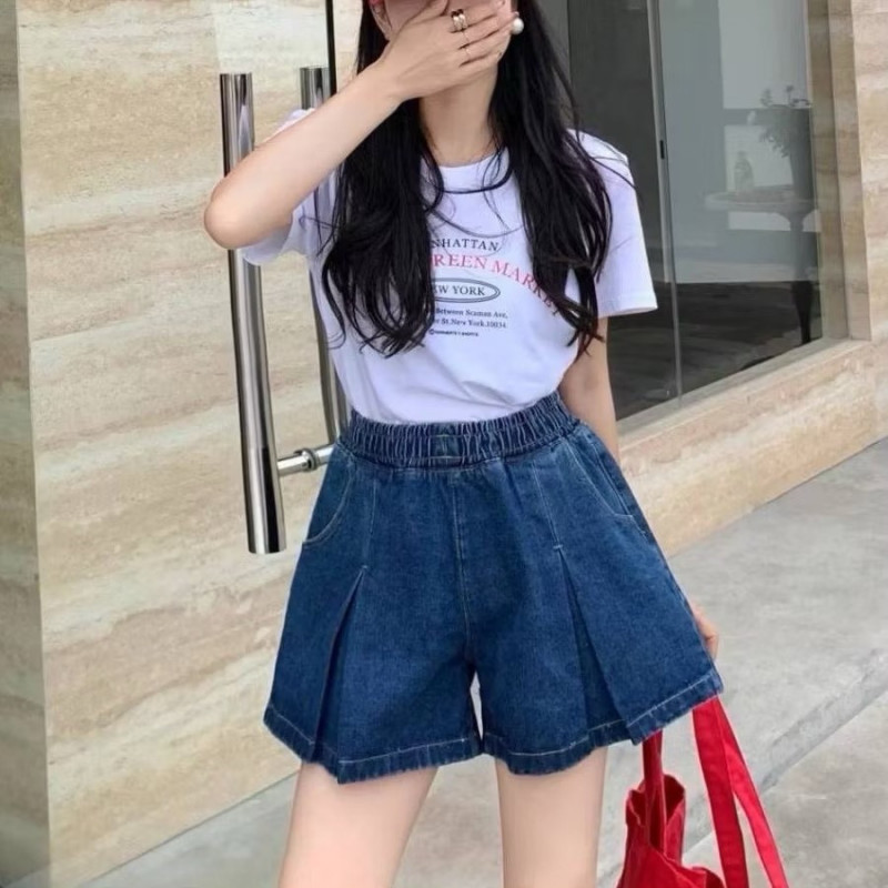 熱賣中🔥 即將售完A634鬆緊寬褲管牛仔短褲