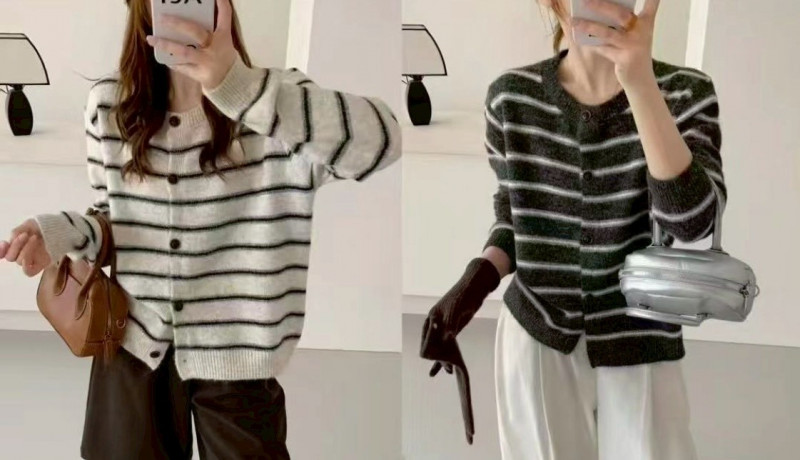 熱賣中🔥 即將售完A641條紋排釦針織外套