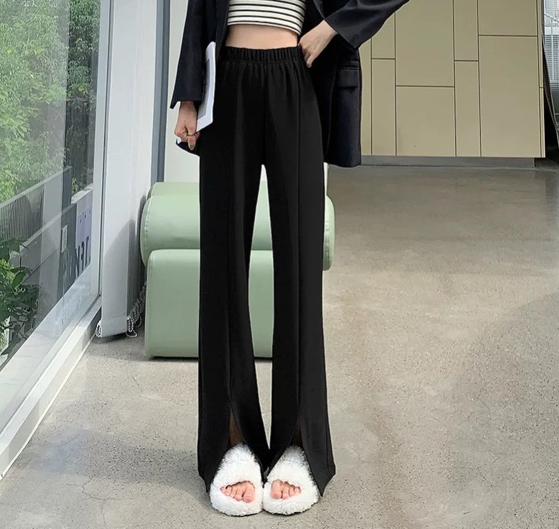 熱賣中🔥 即將售完A672鬆緊前開岔喇叭褲(杏)
