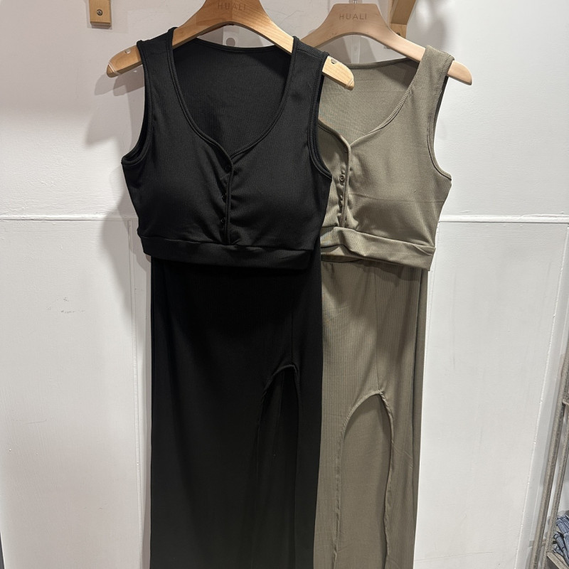 熱賣中🔥 即將售完A691罩杯背心+前開衩長裙套裝(綠)