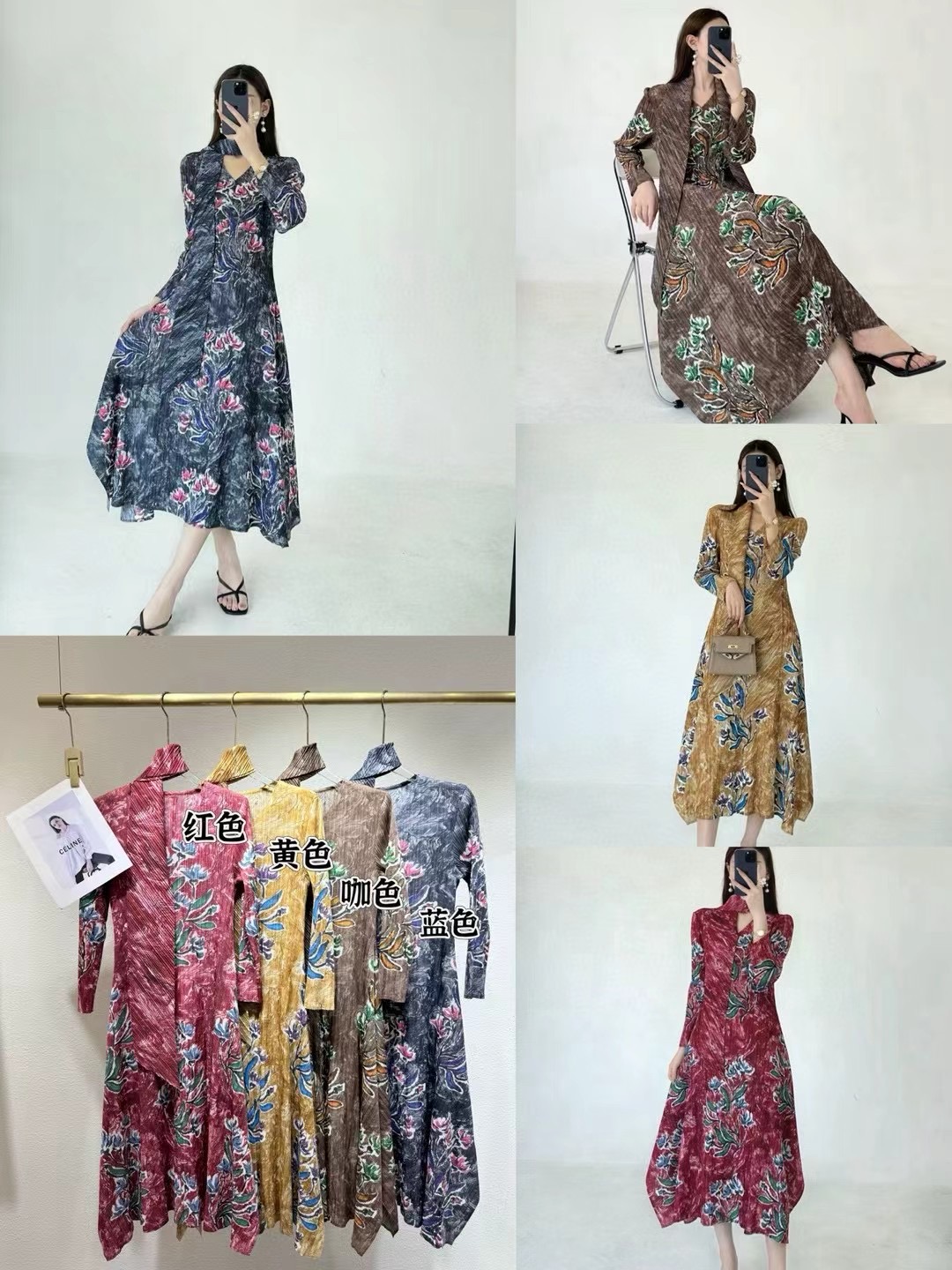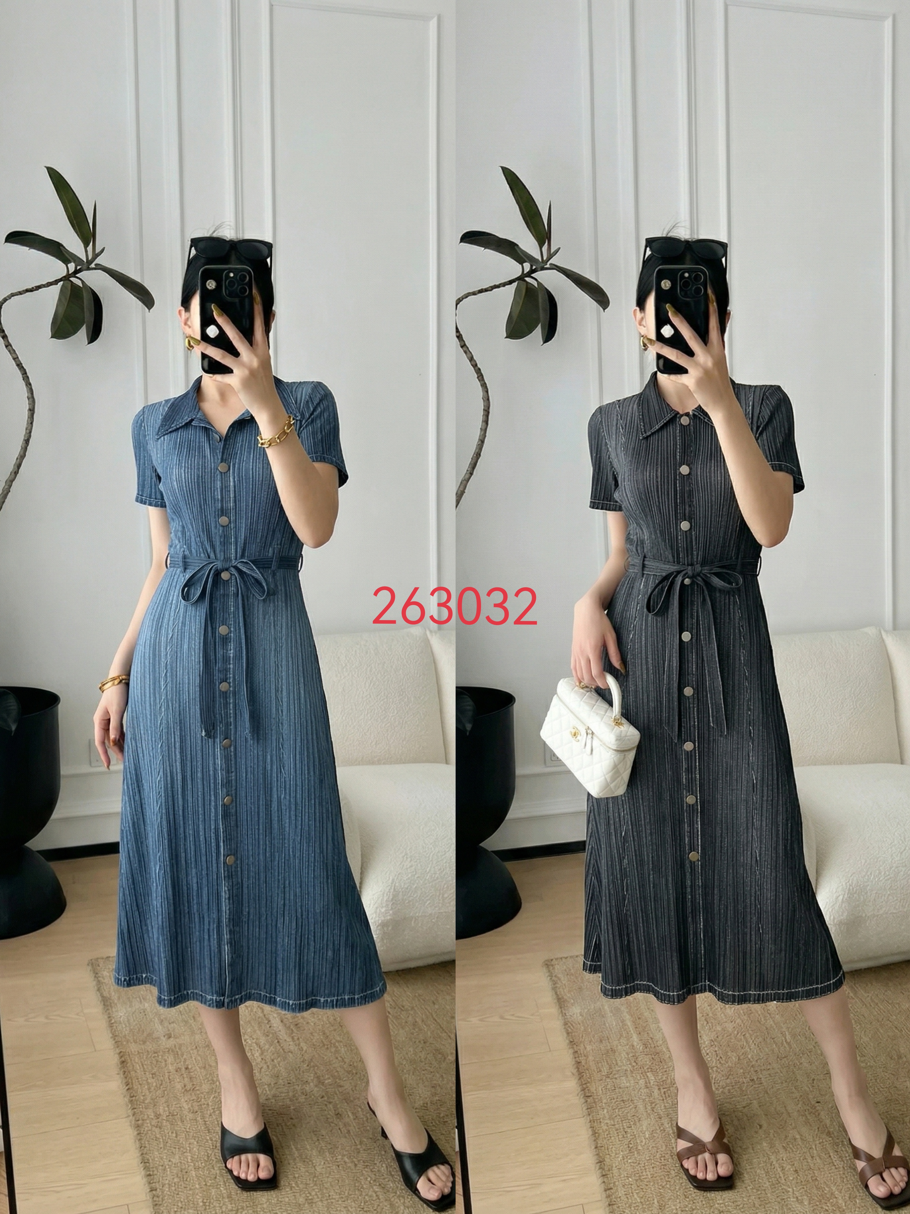 熱賣中🔥 即將售完1100拼色鑽石褶連衣裙-長洋【裙長110cm】