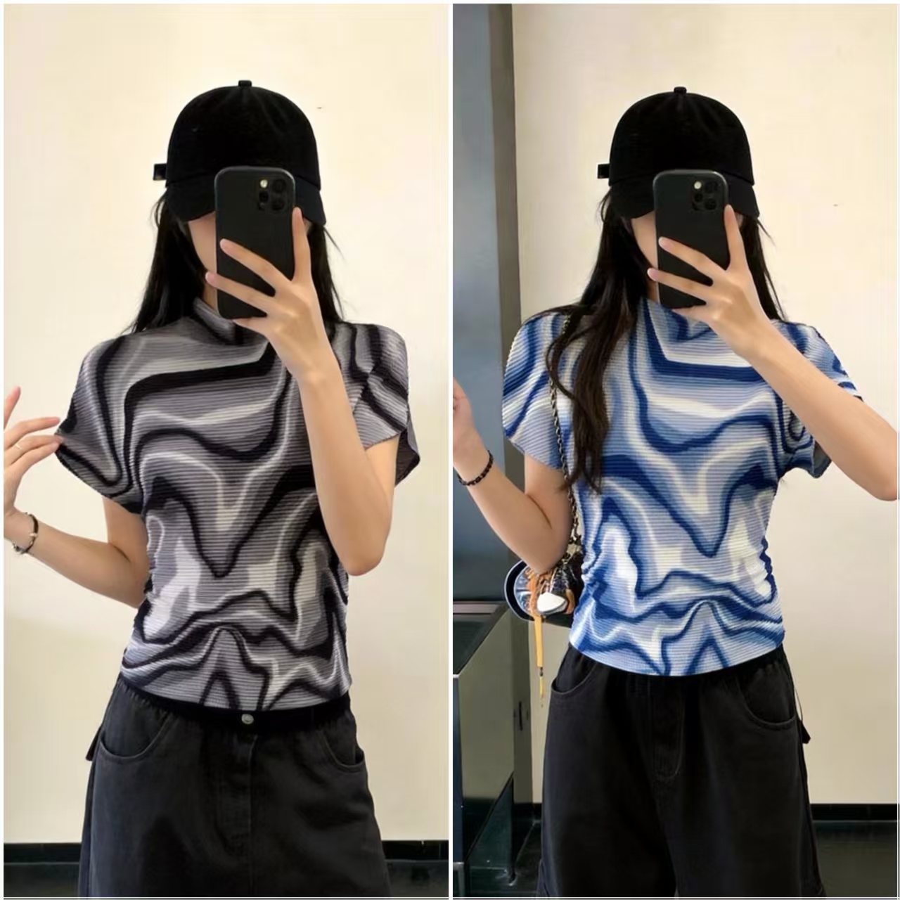 熱賣中🔥 即將售完1200拼色鑽石褶上衣【衣長55cm】