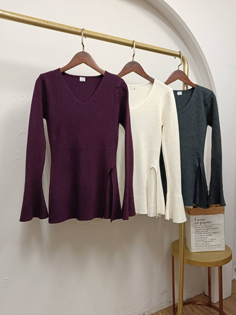 熱賣中🔥 即將售完243V領坑條縮腰開衩上衣