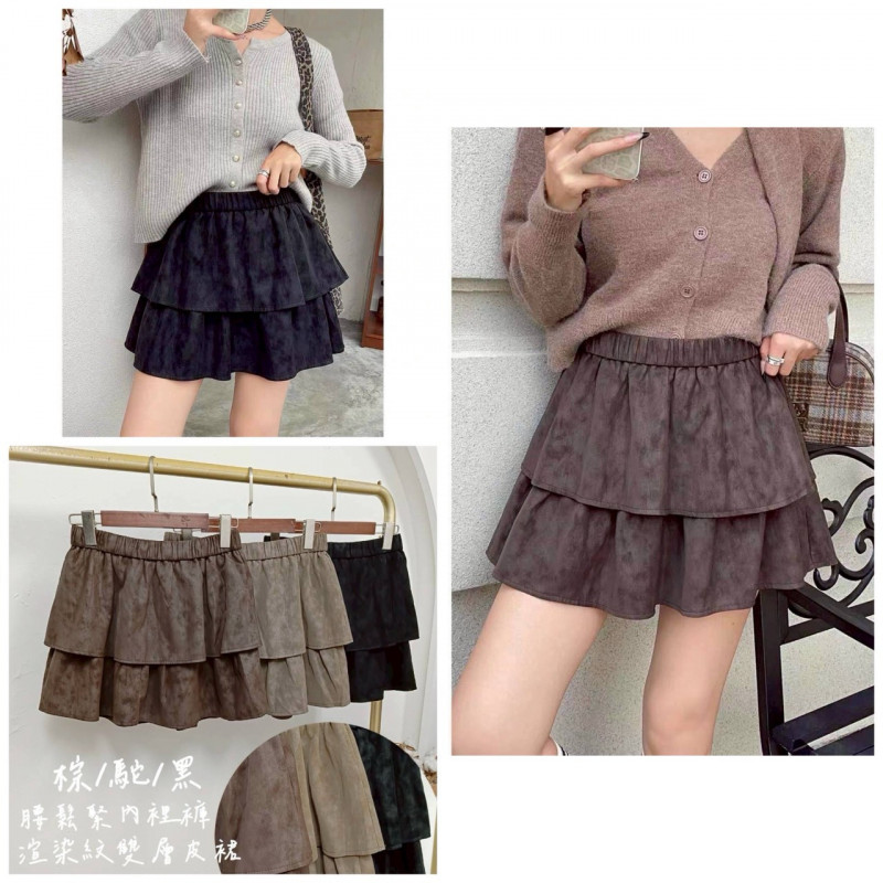 熱賣中🔥 即將售完236鬆緊暈染雙層皮褲裙