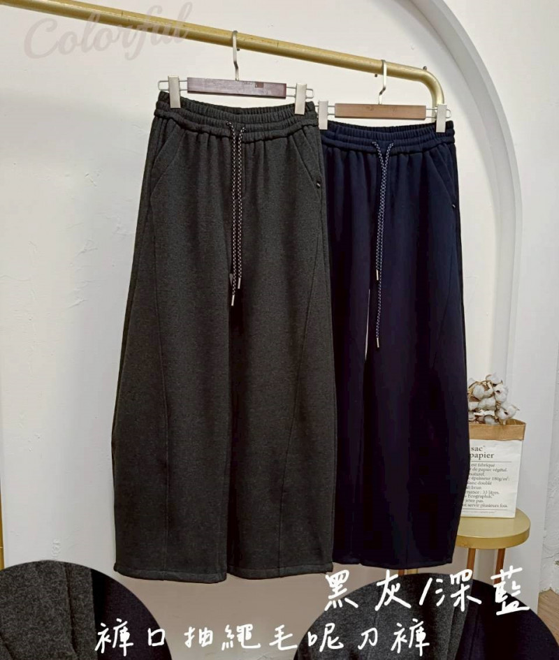熱賣中🔥 即將售完234鬆緊抽繩毛呢彎刀褲