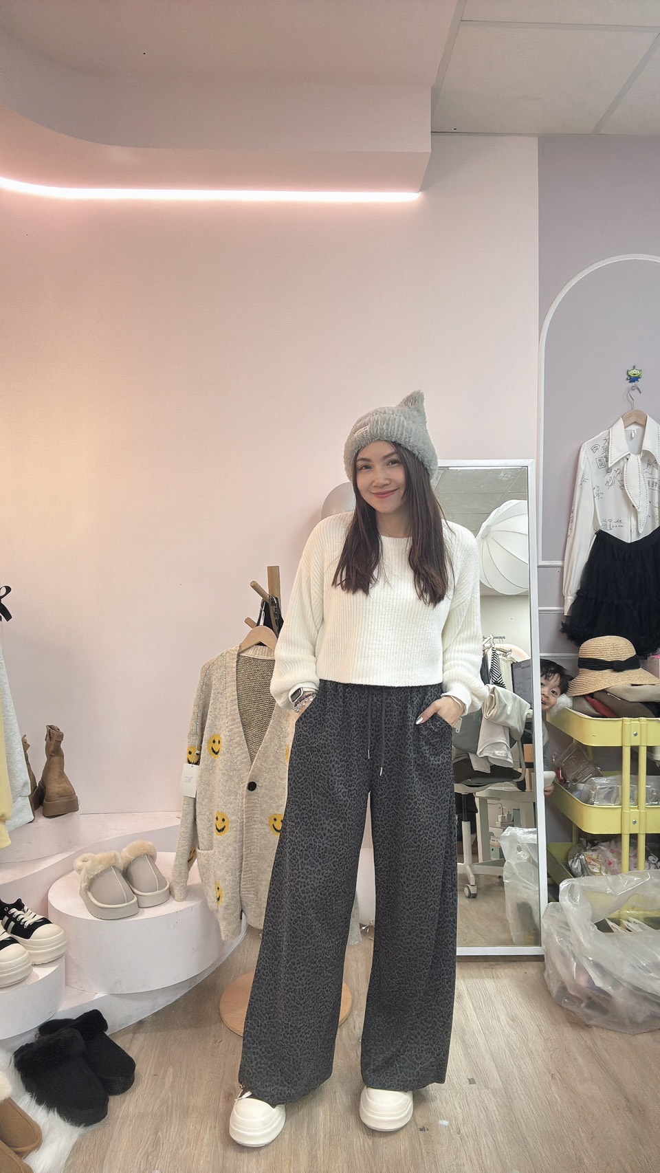 熱賣中🔥 即將售完(預購)女V1103(10)-鬆緊抽繩豹紋可縮口長褲(1400344)(5985灰)