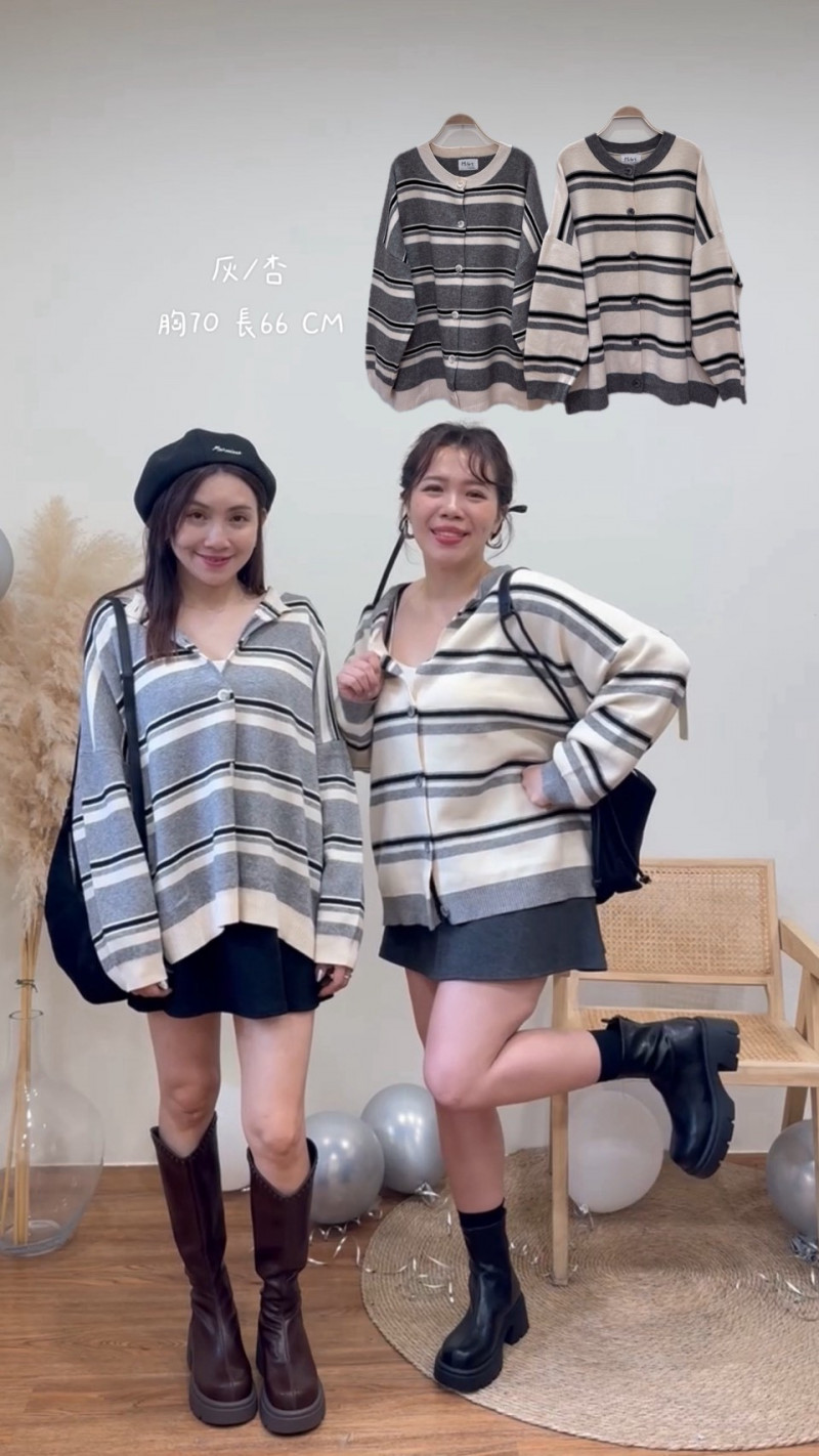 熱賣中🔥 即將售完女KL1030(10)-條紋排釦針織外套(11629)