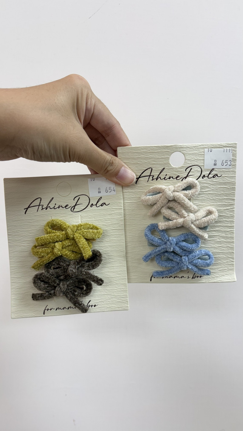 熱賣中🔥 即將售完品FA1119(10)-653杏藍蝴蝶結髮夾(4入)