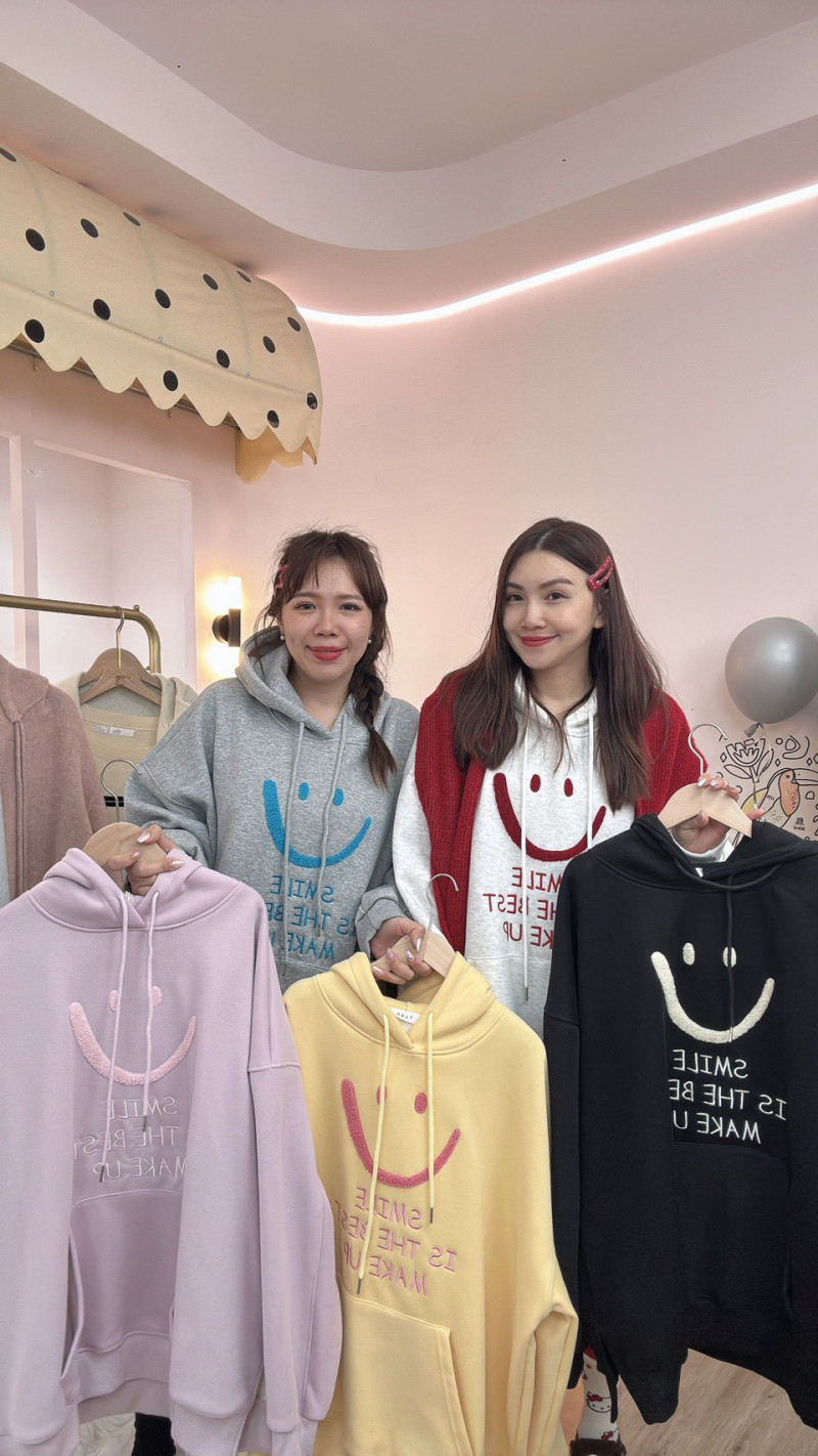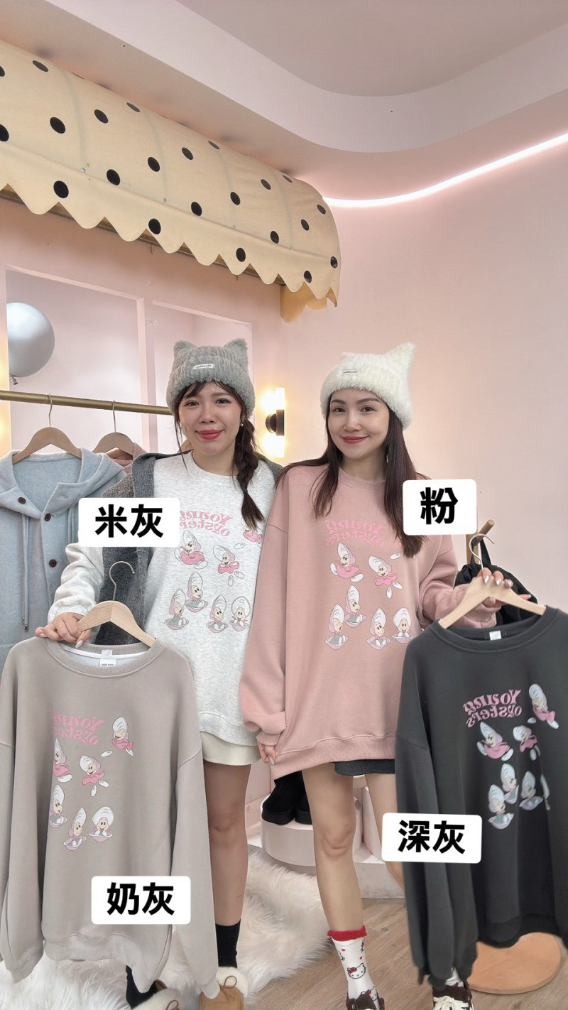 熱賣中🔥 即將售完(預購)女V1120(10)-Q毛微笑刺繡英文帽T(1400436)