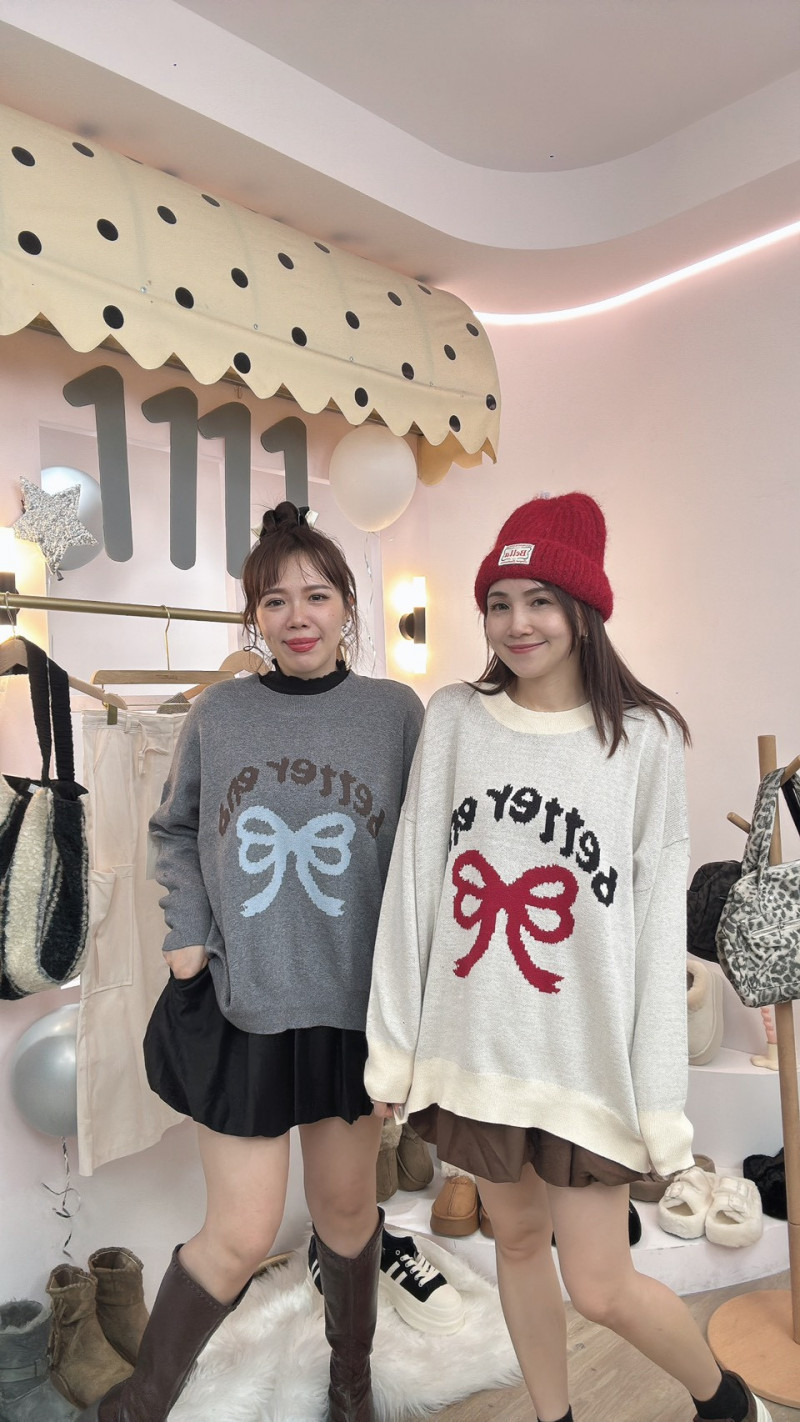 熱賣中🔥 即將售完(預購)女KL1031(10)-蝴蝶結英文針織上衣(11683)