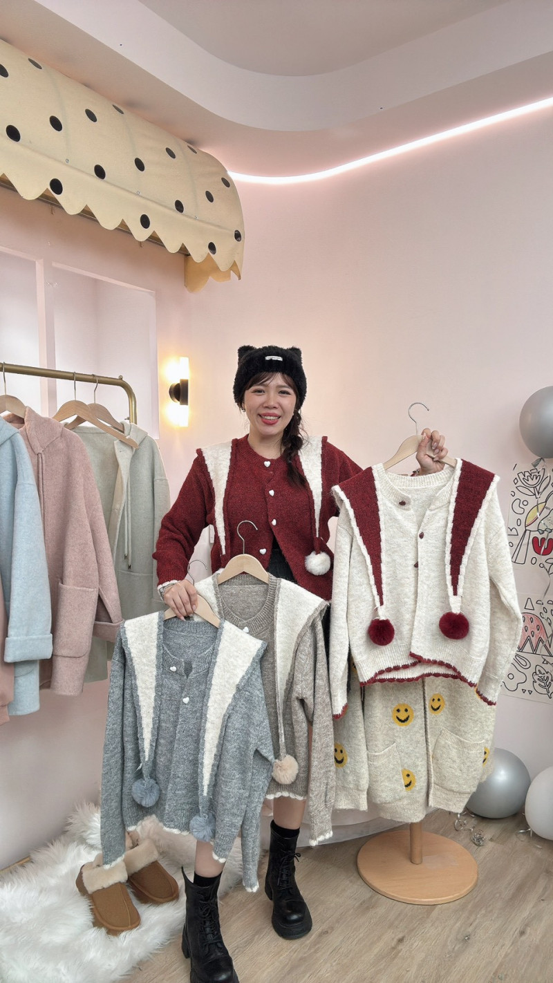 熱賣中🔥 即將售完(預購)女V1103(10)-滿版微笑針織外套(1400373)(5982杏)