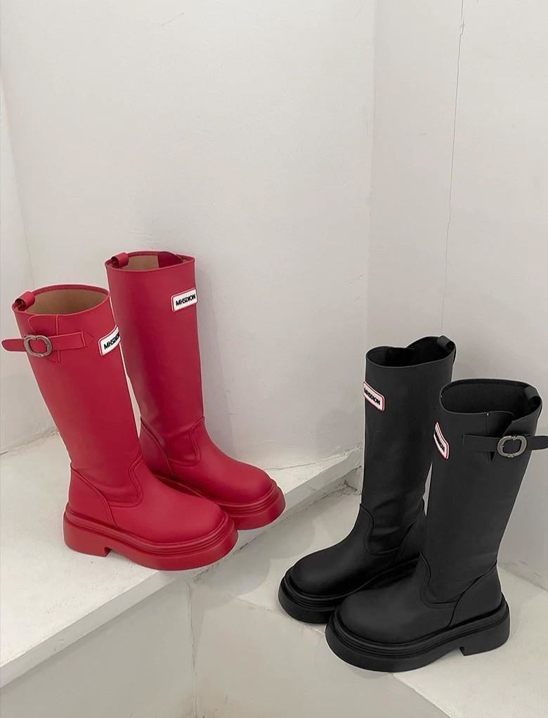 熱賣中🔥 即將售完(預購)鞋A1104(10)-396紅軟皮長筒雨靴(G8456)