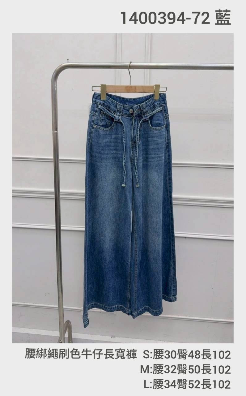 熱賣中🔥 即將售完(預購)女V1105-3144藍造型腰綁帶牛仔寬長褲(1400394)