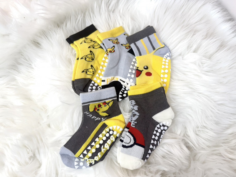 熱賣中🔥 即將售完品FA1110(10)-607黃灰皮卡丘防滑襪(5雙入)