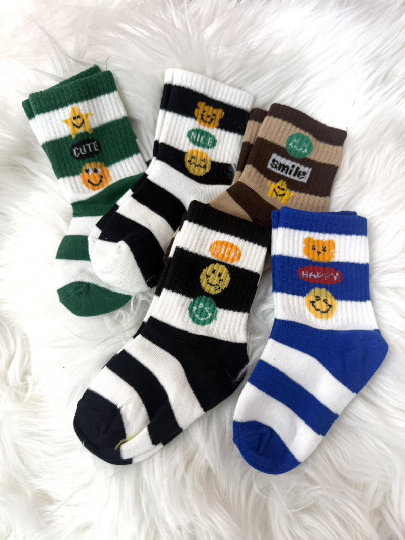 熱賣中🔥 即將售完品FA1002(10)-551橫條表情微笑襪子(5入組)(S)