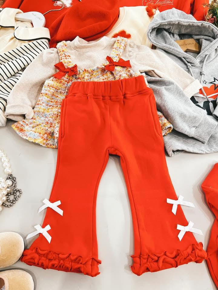 熱賣中🔥 即將售完廠TH-6212 紅蝴蝶結刷毛喇叭褲(38288)