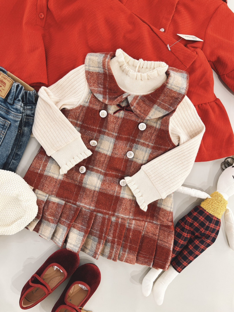 熱賣中🔥 即將售完TH1110(10)-1463紅格紋翻領背心洋裝(38894)