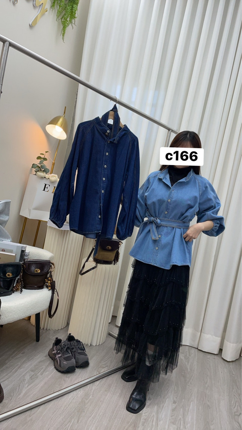 熱賣中🔥 即將售完C166款 中山領修身牛仔襯衫$399