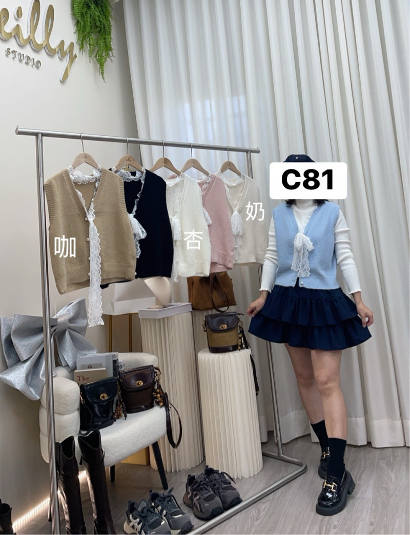 熱賣中🔥 即將售完C81款 (2022)蕾絲綁繩珍珠釦背心$199