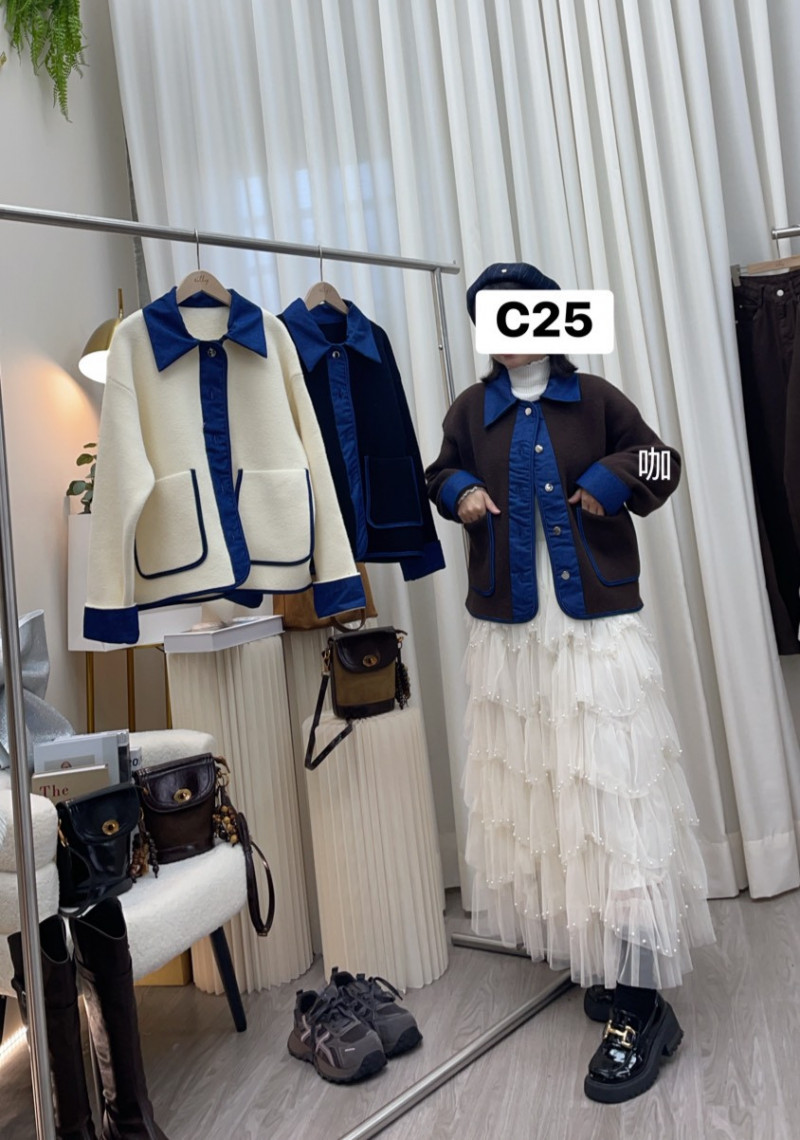 熱賣中🔥 即將售完C25款 (6017)拚色水貂毛排釦外套$499