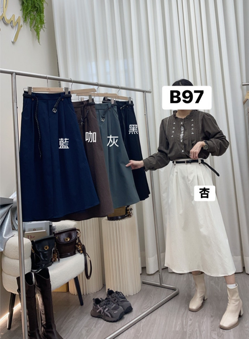 熱賣中🔥 即將售完B97款 (8231)斜紋挺布後鬆緊造型雙釦口袋修身長裙$268