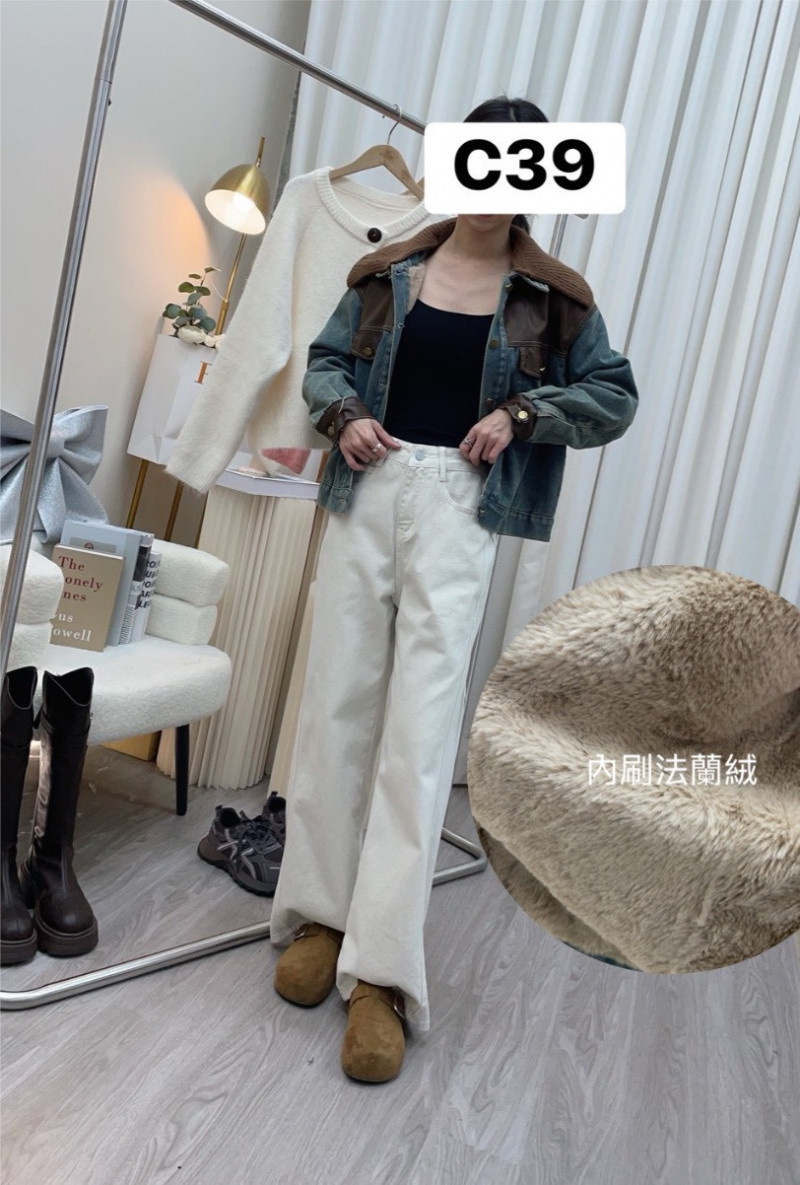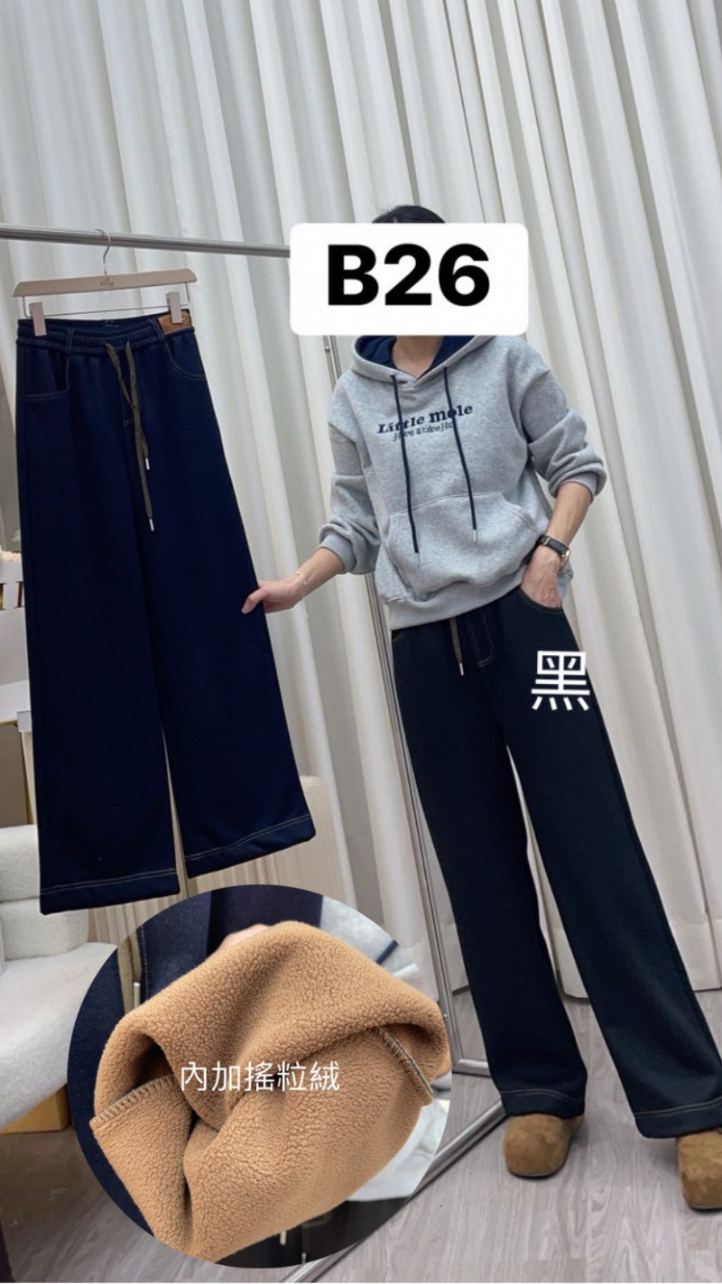 熱賣中🔥 即將售完B26款 (01)仿單寧內加搖粒絨皮標寬褲$220