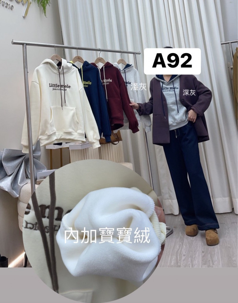 熱賣中🔥 即將售完A92款 (93512)Little刺繡字母寶寶絨帽T$299