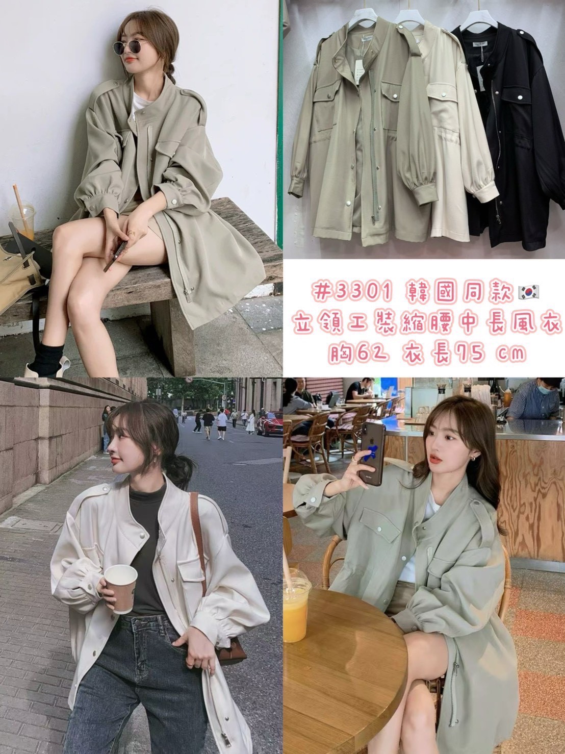 熱賣中🔥 即將售完3301-1現貨-韓國款立領工裝風外套
