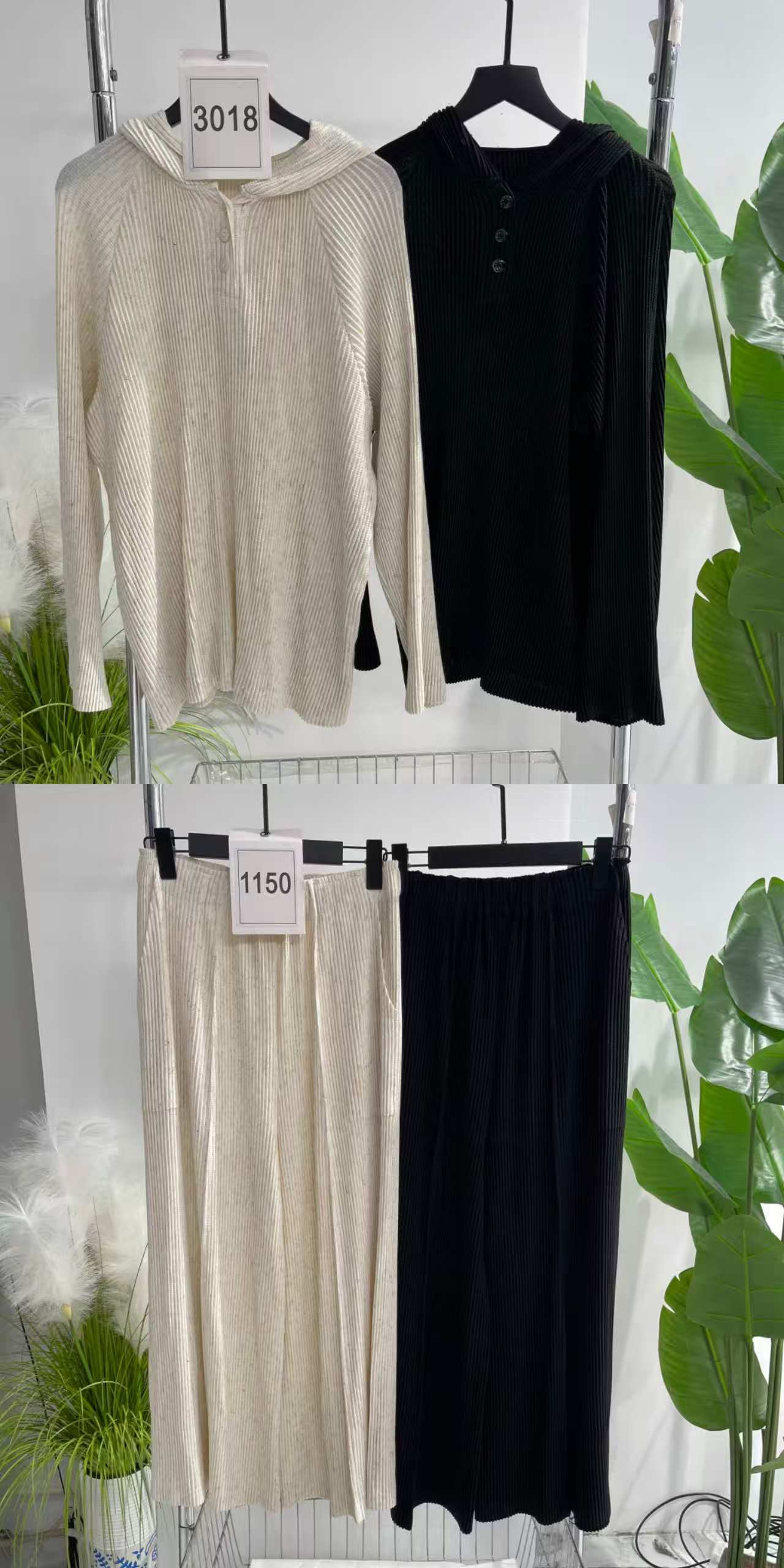 熱賣中🔥 即將售完3018 針織套裝 連帽上衣直筒褲子【衣長69cm褲長94cm】