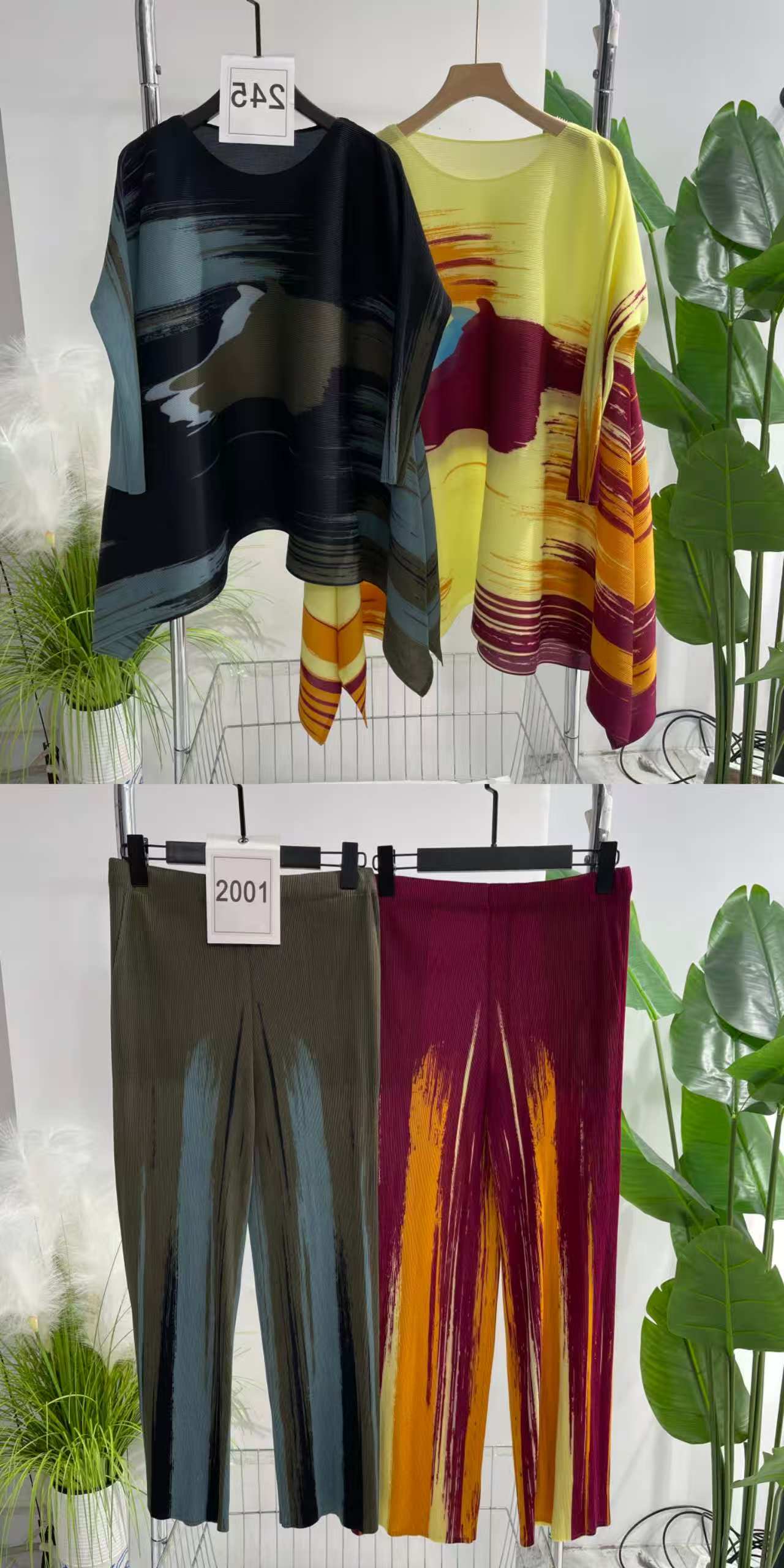 熱賣中🔥 即將售完245-密褶套裝 印花跳跳上衣直筒褲子【衣長88cm褲長95cm】