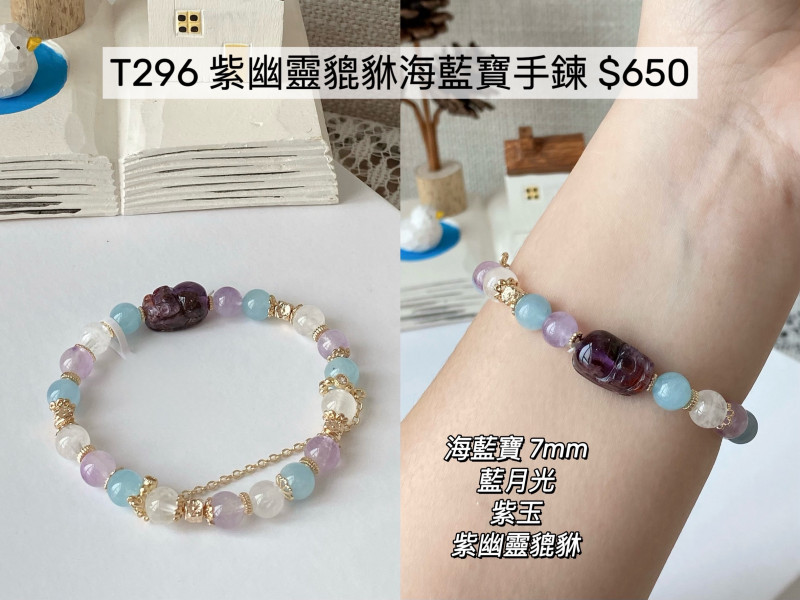 熱賣中🔥 即將售完T296紫幽靈貔貅海藍寶手鍊