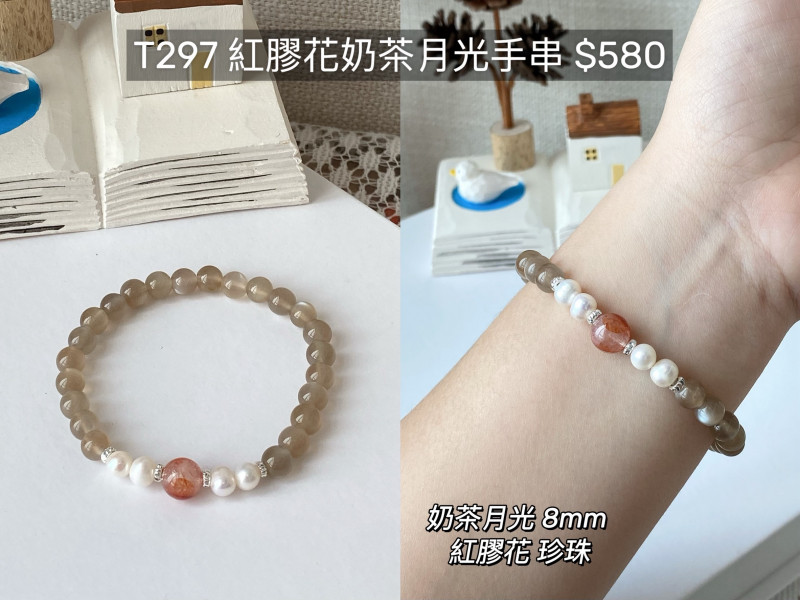 熱賣中🔥 即將售完T297紅膠花奶茶月光水晶手串