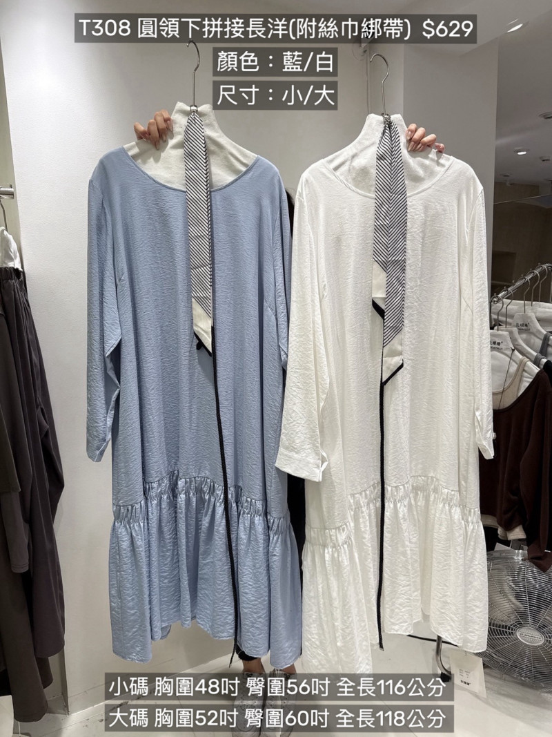 熱賣中🔥 即將售完T308圓領下拼接長洋(附絲帶綁帶)